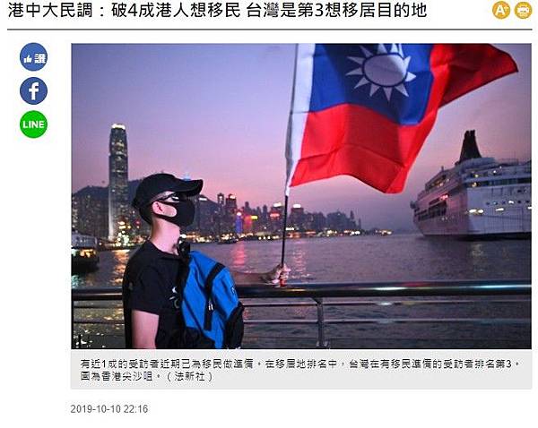分享香港政治不安定 外媒:大批港人要移民台灣!到Facebook 分享香港政治不安定 外媒:大批港人要移民台灣!到Line 分享香港政治不安定 外媒:大批港人要移民台灣!到Google+
