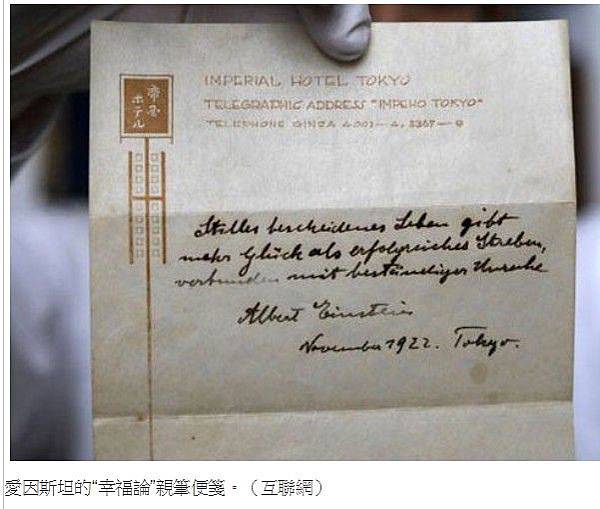 愛因斯坦的“幸福論”親筆便箋。 (互聯網)