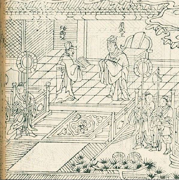 武王為了能夠得到姜太公傳授《丹書》,虔誠的齋戒三日,將帝王的冠冕端端正正的戴好,不敢上坐,下堂對著南面站立,向姜太公施禮,請求傳授《丹書》。