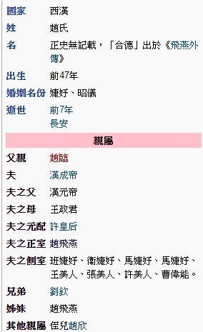 正史未記載她的名字,趙合德之名出於《飛燕外傳》。