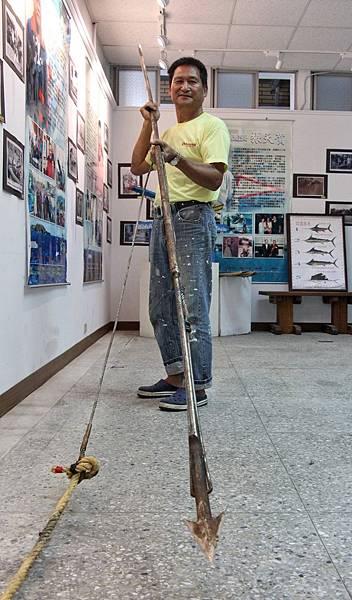 陳專豐捕漁50年,捐出當年捕捉鯨鯊的鏢槍,一方面讓後輩看見漁民辛苦,也見證台灣海洋保育史。記者李蕙君/攝影