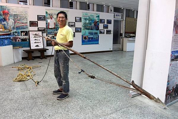 陳專豐捐出鯨鯊鏢竿外,也捐出過去使用過的海上工具,盼後輩由此感受漁民捕魚的辛勞,...