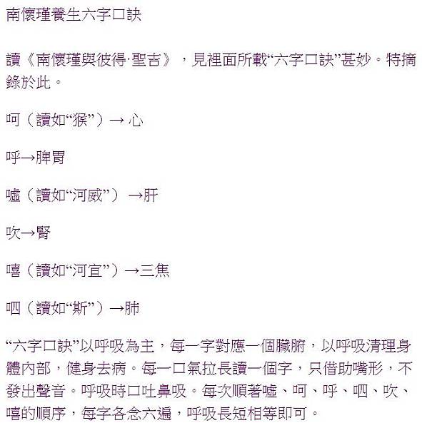 呵、呬、呼、嘻、噓、吹、除病「六字口訣」的正確練法和讀音(據禪宗大師南懷瑾老師經驗)