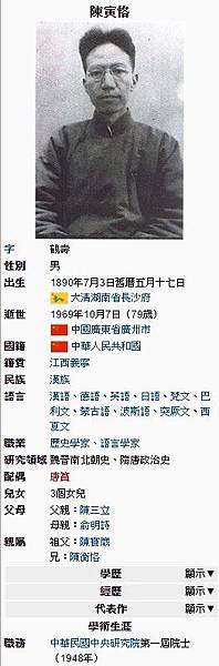 陳寅恪/福建上杭客家話客家人/與錢穆、陳垣、呂思勉並稱為嚴耕望所評選的「現代四大史學家」/歷史學家、古典文學研究家、語言學家、中央研究院院士、中華民國(民初時期)清華大學國學院四大導師之一(其餘三人為梁啟超、王國維、趙元任),通曉二十餘種語言/具備了閱讀蒙古語、藏語、滿語、日語、梵語、英語、法語、德語、巴利語、波斯語、突厥語、西夏語、拉丁語、希臘語等十餘種語言 @ 姜朝鳳宗族 :: 痞客邦 PIXNET :: - https://goo.gl/JJcCIk