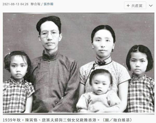 1939年秋,陳寅恪、唐篔夫婦與三個女兒避難香港。(圖/取自維基)