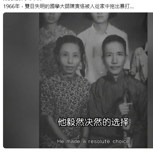 1962年,陳寅恪在浴室跌跤,右腿折斷,身體江河日下。文化大革命發生,紅衛兵凍結陳寅恪夫婦工資,陳被多次要求寫書面檢查交代,他聲明說:「我生平沒有辦過不利於人民的事情。我教書四十年,只是專心教書和著作,從未實際辦過事。」他珍藏多年的大量書籍、詩文稿,多被紅衛兵洗劫,他有詩自哀:「涕泣對牛衣,卌載都成腸斷史;廢殘難豹隱,九泉稍待眼枯人。」造反派將大字報貼滿了他家牆壁,甚至貼到臥室,貼到枕頭邊。還把喇叭設在他床前,「讓反動學術權威聽聽革命群眾的憤怒控訴」。