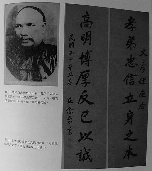 丘念台是丘逢甲的大兒子。從名字上就可以看出,丘逢甲對台灣用情至深。