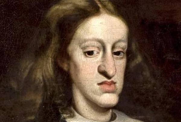 西班牙的腓力四世(1605-1655)和奧地利的瑪麗安娜(1634-1665)通婚;這是一場叔叔和侄女的婚姻,這使得卡洛斯二世不僅是他們的兒子,也是他父親的侄孫和他母親的表弟。腓力三世和腓力二世是卡洛斯二世的爺爺和姥姥,他們都是近親通婚,關係不限於叔叔/姑姑、侄子/侄女之間,還是在表兄弟姐妹之間。他們通過一代又一代的努力將自己身體的隱性缺陷顯現並且不斷放大,使得整個家族基因越來越「純正」,造就了清一色的「鞋拔子臉」和「厚嘴唇子」。