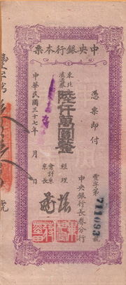1949年,國民政府遷台,陳誠從上海運來80萬兩黃金,作為發行新台幣的後盾,從此,剪斷了舊台幣與金元券的臍帶。