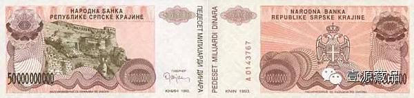 1993年克羅埃西亞的塞爾維亞克拉伊納共和國發行了500億第納爾紙幣。