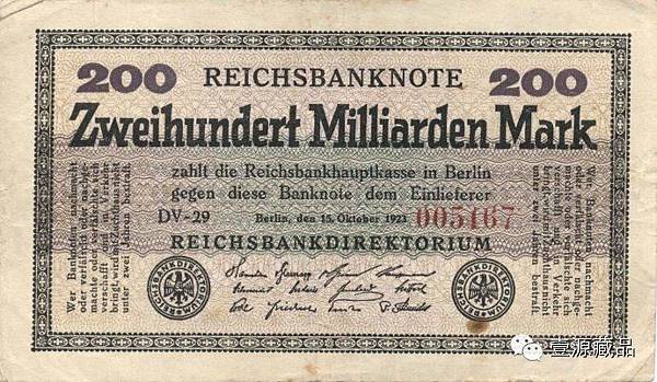 1923年10月15日德國發行的2000億馬克。