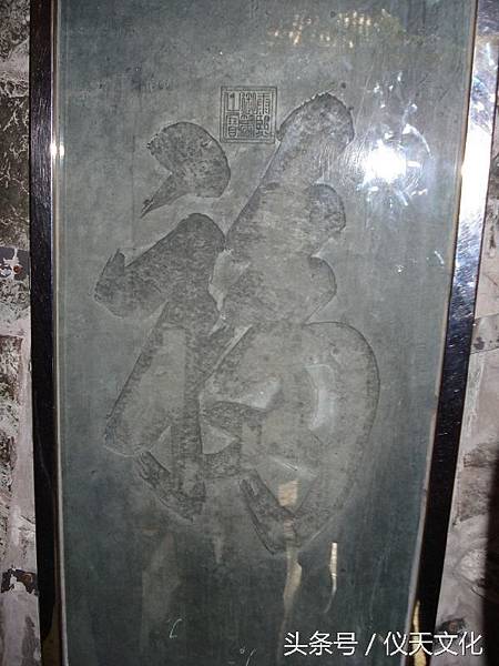 「福字碑」高1米左右,長80厘米左右,最令人叫絕的是字剛勁有力,頗具氣勢的「福」字。這個「福」字右上角的筆畫像個「多」字,下邊為「田」,而左偏旁極似「子」和「才」字,右偏旁則像個「壽」字,因此整個「福」字又可分解為「多田、多子、多才、多壽、多福」,巧妙的構成了福字的含義。此外,在碑的右上方,刻有康熙的玉璽以鎮福,因此這個「福」字被譽為天下第一福。