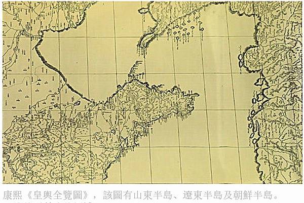 康熙《皇輿全覽圖》,該圖有山東半島、遼東半島及朝鮮半島。(維基百科公共領域)
