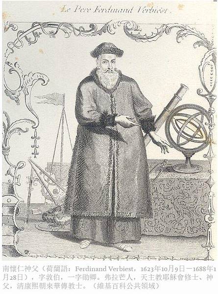 南懷仁神父(荷蘭語:Ferdinand Verbiest,1623年10月9日-1688年1月28日),字敦伯,一字勛卿。弗拉芒人,天主教耶穌會修士、神父,清康熙朝來華傳教士。(維基百科公共領域)