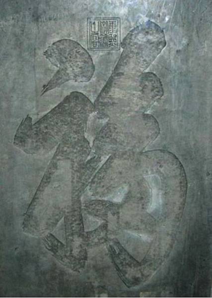 位於北京恭王府花園的一塊石碑,花園一進門有一個“福”字碑,這個碑上的福字是康熙御筆
