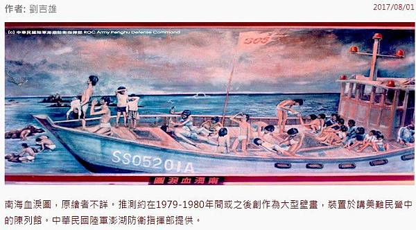 在台美斷交、中美建交、中越戰爭的1979年,《南海血淚》與「南海血書」做為巨量的反共反美政治宣傳,雖然是取材或改編自接運至澎湖的清風號(Thanh Phong)難民船上「吃人肉」的死難者經驗,蔣政府卻僅僅將之總結在單一的抽象口號:「今日我們不能做一個為自由而奮戰的鬥士,明天我們就會淪為漂流海上的難民。」個體難民的多重生命細節,與澎湖難民營在12年間的內在差異,在近40年來被隱藏而不可見。原生於台灣的我們,對於蔣毛死後與台美斷交同時期的中共越共戰爭幾乎無感,而如今我們才看到中越戰爭在越華難民的身體所造成的「兩次流亡」等諸多遺緒。