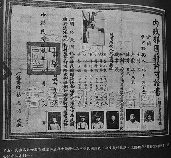 1945年(昭和20)年這個在近代史上最重要的一年,8月15日這天是台灣人歡欣鼓舞的日子,收音機傳來日本昭和天皇宣布無條件投降的聲明,但對於下山一這一家而言卻瞬間成了亡國奴,48萬8千多日本人開始強迫分批遣送回日本,但為了照顧年邁多病的母親,下山一全家人決定同去馬烈巴孝養母親,但母親卻在隔年就病逝了。這時該是接受遣送回日本的時候了,然而下山一卻偏偏在此時被情治單位拘押,只能愣看著最後的遣送令垂淚,這時已經註定要滯留在台灣了;原來他被指控藏匿日軍,民國36年發生二二八事件,又被控藏匿謝雪紅,為了莫須有的罪名,嚐盡各種酷刑,幾乎要命喪黃泉,幾度擔任公職又被密告外國人不能當公務員而遭撤職。失去國家保護的亡國奴,誰來保障工作權和教育生存權,民國41年全家下山到霧社申請歸化為中華民國國民,尋求新國家的保護,然而悲慘的命運卻未因而停止。從前是高級知識份子,即將接任校長的下山一,此時已經找不到穩定的工作,為了生活淪為霧社電源保護站苗圃工人,而後又被派到鬧鬼最凶,沒人敢去的高峰瞭望台,孤獨守護瞭望台五年半,全家過著顛沛流離的生活,連出身日本貴族的愛妻,都得赴無人敢耕種的可烏卡恩鬼地學種作物以維持生活。他非常自責:「我恨自己真是孬種,娶到如此賢德的日本貴族女,卻讓她隨我在蠻荒的深山,受盡煎熬。我真的萬般無奈,該怎麼辦呢?」直到子女都已經長大就業有穩定收入,有能力購屋置產,才讓生活安定下來。民國43年5月終於獲得內政部許可,拿到歸化為中華民國國籍證書,申請歸化時選擇姓林。因為當名叫下山一時,大部分生活於坎坷黑暗中,期望歸化後轉運光明,因此為自己取名「光明」,從此追尋光明的一生。