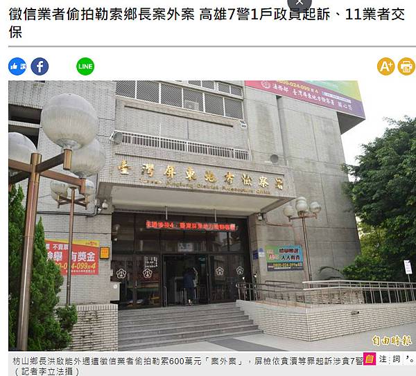 徵信業者偷拍勒索鄉長案外案 高雄7警1戶政員起訴、11業者交保 - 高雄市 - 自由時報電子報 https://bit.ly/36iPmQR