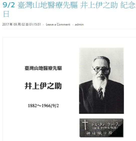 9/2 臺灣山地醫療先驅 井上伊之助 紀念日 | 台灣回憶探險團 - https://goo.gl/uAcC1Y