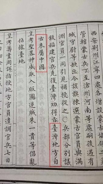 雍正元年,憲皇帝即位,詔曰:「台灣自古不屬中國,我皇考神武(即康熙帝)遠屆,拓入版圖。... 」