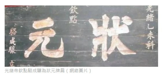 光緒帝欽點駱成驤為狀元牌扁(網絡圖片)