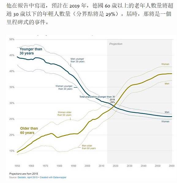 摘要:據加拿大 Visual Capitalist 測算,隨著越來越多人進入老年,而生育率低到 1.5%,到 2019 年,德國 60 歲以上老年人數量將超過 30 歲以下年輕人;到 2020 年,德國將進入人口負成長模式。