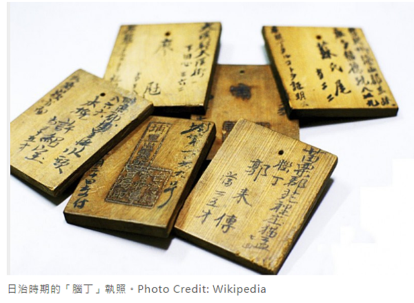 日治時期的「腦丁」執照。Photo Credit: Wikipedia