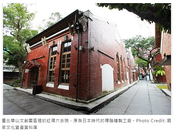 臺北華山文創園區裡的紅磚六合院,原為日本時代的樟腦精製工廠。Photo Credit: 國家文化資產資料庫