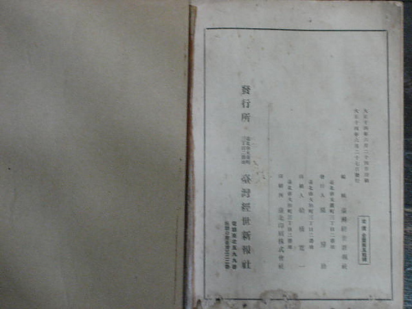大正十四年六月印刷發行,發行所 臺灣經世新報社