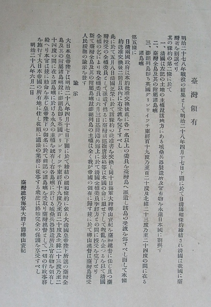 明治二十八年1895年4月17日馬關條約,日本稱為(下關條約)或(日清講和條約),開始了50年的日本殖民統治。