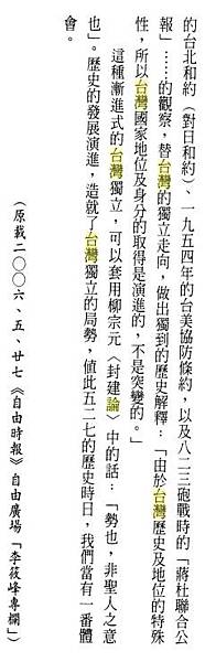 這種漸進式的台灣獨立,可以套用柳宗元〈封建論〉中的話:「勢也,非聖人之意也」。歷史的發展演進,造就了台灣獨立的局勢,值此五二七的歷史時日,我們當有一番體會。