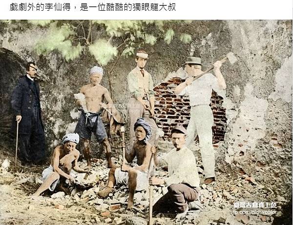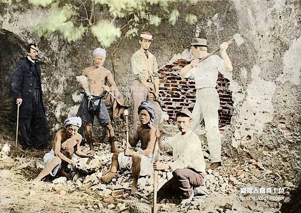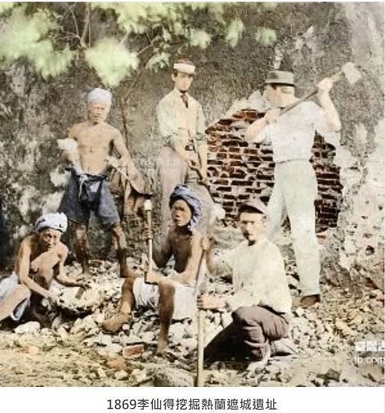 1869年,李仙得來到安平熱蘭遮城(fort Zeelandia)遺址進行挖掘,由攝影師聖朱利安.愛德華士(St. Julian Hugh Edwards)拍下珍貴影像,左邊酷酷獨眼大叔就是李仙得本人!(影像經數位上色)