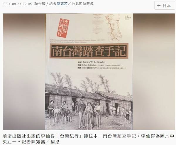 前衛出版社出版的李仙得「台灣紀行」節錄本—南台灣踏查手記。李仙得為圖片中央左一。記者陳宛茜/翻攝