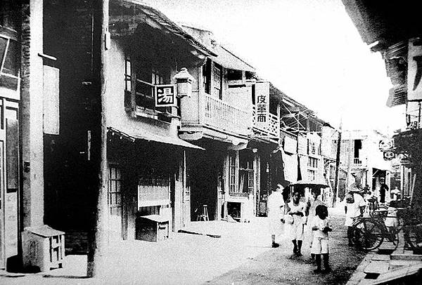 圖:看西街佈道所原址日本時代照片數位上色(「湯」字招牌處,拍攝時已非佈道所),刊載於《新使者雜誌165期》,感謝 臺灣古寫真上色 提供