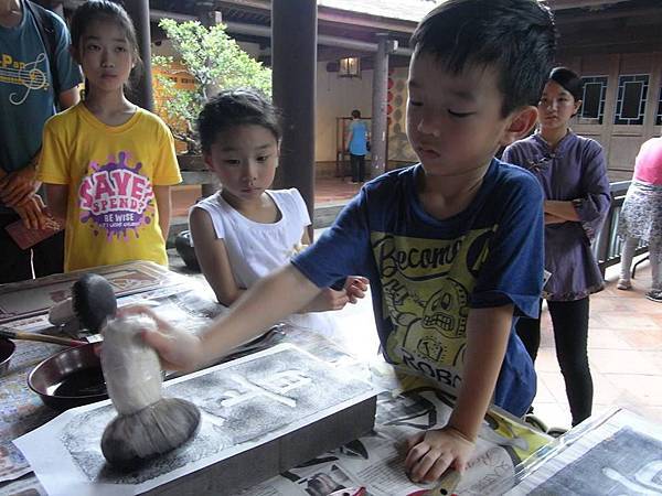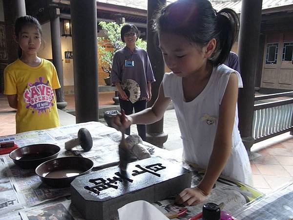 她指出,昨天拓的是一座「聖旨碑」,存在花園旁,仍由私人保存的三落大厝內,是光緒皇帝在1880年賜給林家,也是現今遊客造訪必看、必留影的景點,為了讓民眾有更深刻的感受,在取得主人同意後,以不傷害古蹟的方式拓下碑文,仿製成數個聖旨碑,讓民眾體會不失原味的拓聖旨碑。