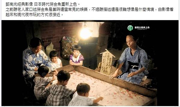 日治時期漸就有撈魚遊戲是許多台灣人的夜市印象之一,大家逛夜市時路過撈魚的攤子,總會看見許多人圍觀