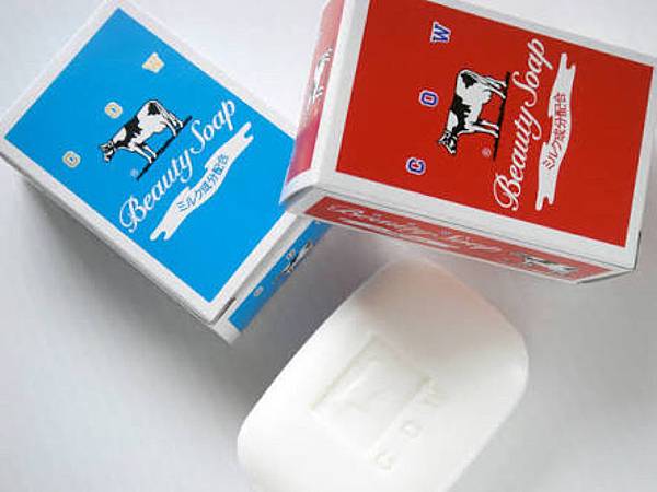 從1928年就開始販售的牛乳石鹼分紅盒與藍盒,紅盒是玫瑰保濕型,而藍盒是茉莉清爽型