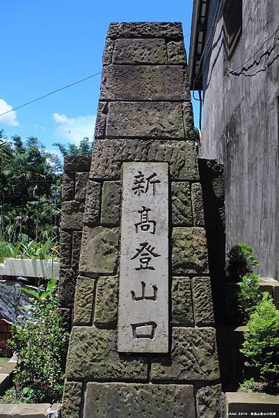從水裡坑(水里的舊名)出發登新高山的路線,登山口位於於今水里鄉頂崁村,也就是在台16線與台21線的共線起點處。1937年(昭和12年),設立了新高登山口勒碑。