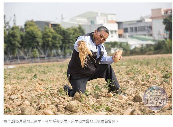 農曆年後,進入地瓜採收旺季,與國內地瓜契作龍頭瓜瓜園合作的台南新化農地,調派大型曳引機鬆土,數10位採收班員持畚箕一字排開,彎腰撿拾露出土畦的肥美地瓜,卡車、怪手等重機械殿後,吊掛裝滿地瓜的太空包。董事長邱木城親自驗收,滿意地說:「今年暖冬少雨,收成品質讚。」
