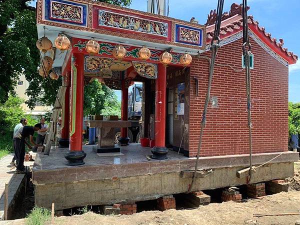 負責搬遷廟宇的建銘樓房遷移工程負責人黃文益表示,整個遷移過程約需1個半月時間,先以最先進的工法將廟宇建築體升高1米半,再安裝滾輪,橫移約5、6米之後,有千人拔河活動,大家共同拉廟約5米,再順時鐘轉向90度,然後後移30米到定位,整個橫移40米,約需一個星期,定位之後還需1個月的時間下降、穩固。