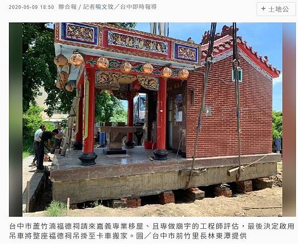 蘆竹湳福德祠搬家「整座吊走」移屋工程 蘆竹湳福德祠搬家「整座吊走」 土地公很低調今才曝光 | 桃竹苗 | 地方 | 聯合新聞網