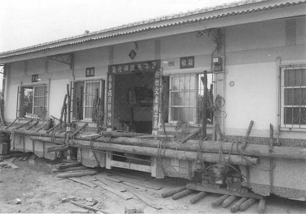 因房子必須向內移10公尺之遠,主要是道路要擴寬,不得不。房屋要移動,因此屋主請專業移厝人員前來用傳統工法將屋子五花大綁,利用鐵管及千斤頂,將房子移動,如此可省下重新再蓋費用。