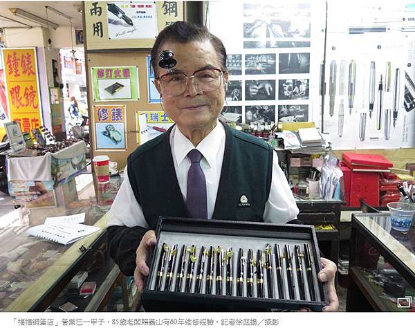 「福福鋼筆店」營業已一甲子,85歲老闆賴義山有60年維修經驗。記者徐庭揚/攝影