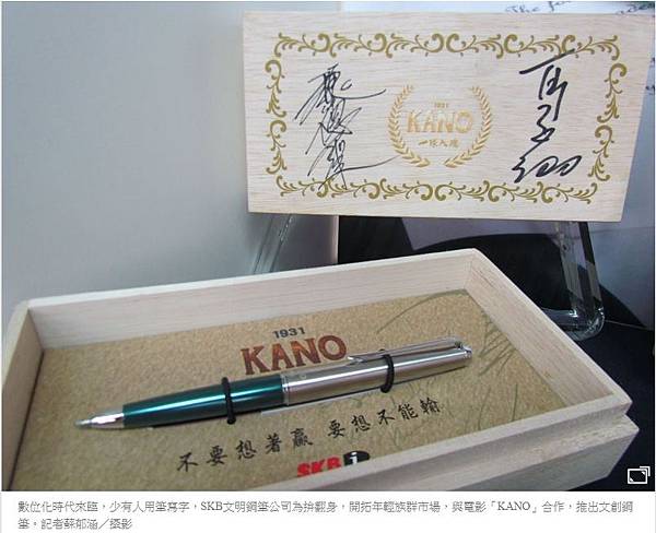 數位化時代來臨,少有人用筆寫字,SKB文明鋼筆公司為拚翻身,開拓年輕族群市場,與電影「KANO」合作,推出文創鋼筆。記者蘇郁涵/攝影
