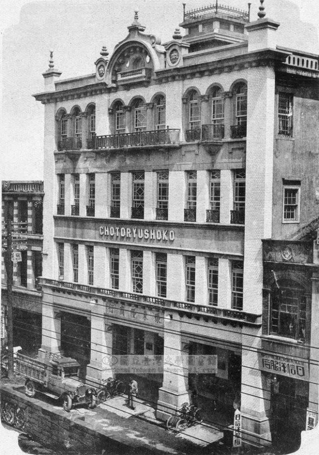 要感受八十年前的新車發表會,不妨探訪延平北路一段一四五號的三個店面,那就是張東隆商行的舊樓。據張家人回憶,這棟四層樓於一九三○年竣工,壯碩的門柱則由福州載來的石頭砌造,頂樓原有假山和池子,脫俗的白色牆面上,曾經有一排英文字母「CHOTORYUSHOKO 」,可不是什麼密碼,而是「張東隆商行」五字的日文發音。