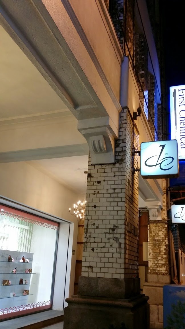 圖為日本時代大稻埕華麗建築「張東隆商行」影像數位上色,位於今延平北路南京西路交叉口東南側附近,目前建築南側1/3被拆除改建,北側2/3建築尚存(第一化妝品,外觀有改變),上方華麗山牆則早已消失。