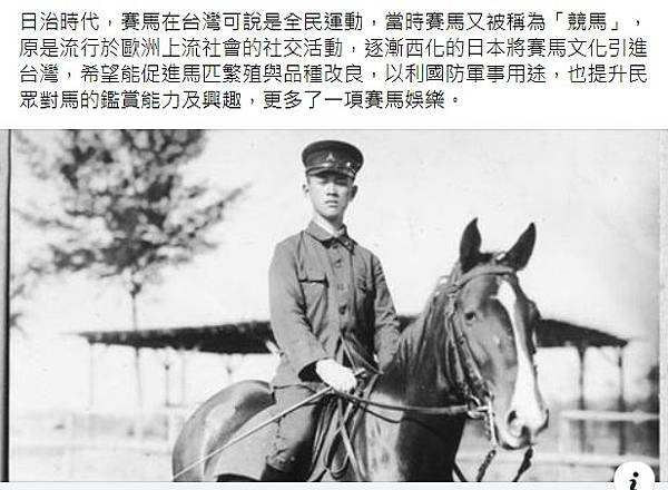 再會吧!奔騰年代:成為學校之前,揭開賽馬場身世1938 年(昭和13 年)台灣總督府公布「台灣競馬令」後賽馬便成為合法的休閒活動,當時各地仕紳子弟紛紛開始學習騎馬、甚至家中畜養馬匹。|圖片來源:周友達 再會吧!奔騰年代:成為學校之前,揭開賽馬場身世 - Readmoo閱讀最前線