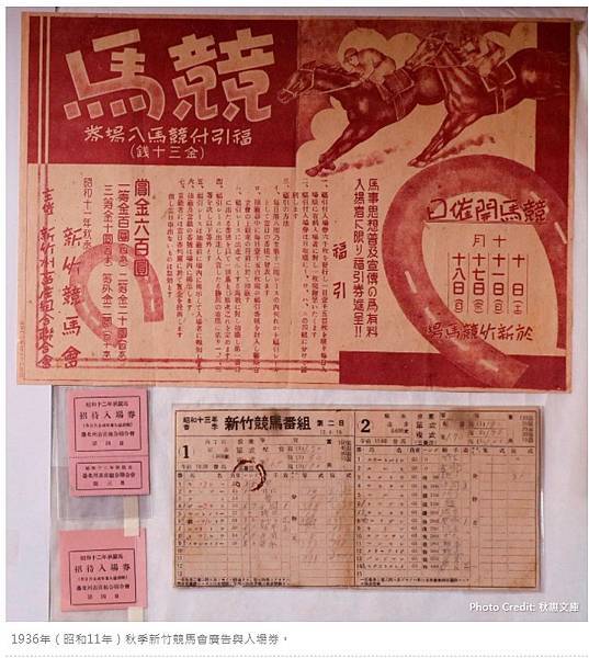 1936年(昭和11年)秋季新竹競馬會廣告與入場券。