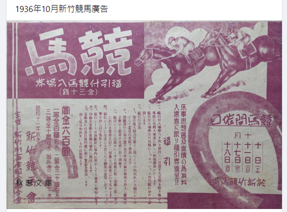新竹的常設競馬場初設在赤土崎,即今清大校址所在。當時賽馬流風所及,各地士紳子弟頗有玩馬之風,如北埔姜家與湖口羅家等,皆有老照片或口傳歷史,描繪當時記憶。[6]本書所錄馬票之價值亦在這一脈絡下,得以勾勒日治庶民生活。