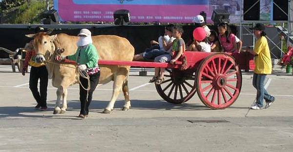 屏東熱帶博覽會相當受到親子歡迎的坐牛車活動,在動保團體質疑虐待動物之後,明年將會取消。(記者葉永騫攝)